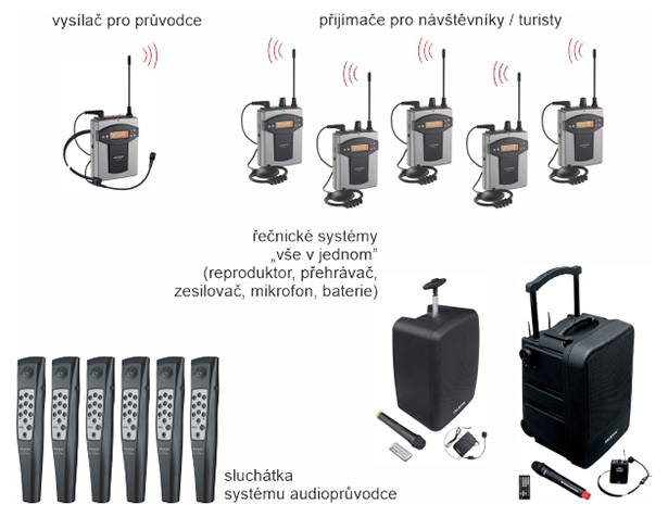 Pokud průvodce spíše řeší jen problém přizvučení jeho hlasu, je vhodné použít řečnický systém WA 420RC nebo komfortnější a silnější WA 480RC, který obsahuje bezdrátový ruční a náhlavní mikrofon. U obou je samozřejmostí akumulátorové napájení s možností dobíjení a s možností napojení dalšího zdroje signálu.