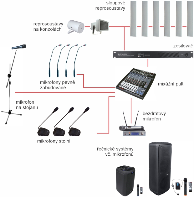 Vícezónové ozvučení vč. mikrofonů a reprosoustav | |||