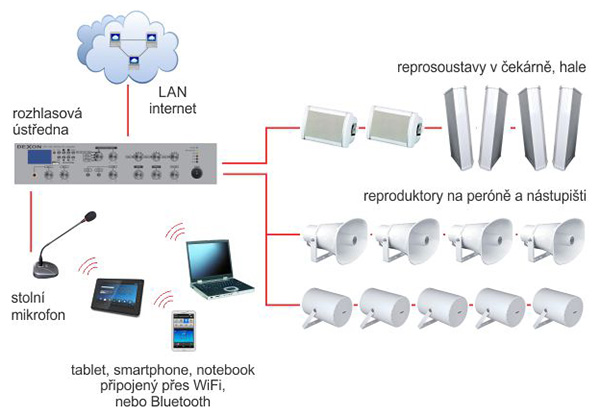 Ozvučení nádrážní budovy, čekárny a nástupiště