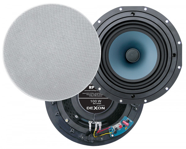 Třetí způsob je sice trochu netradiční, ale zákazníky překvapuje, jak účinný. Mají-li fitness nebo spinningová centra podhledový strop, můžeme instalovat síť více tzv. podhledových reproduktorů např. model Dexon RP 123, které nabudíme výkonovým zesilovačem. Reproduktory to jsou dostatečně výkonné a jejich zvuk je líbivý. Toto ozvučení, buď není tak hlasité jako druhý způsob, naopak zaručuje vyrovnané pokrytí hlasitostí na celé ploše a výbornou srozumitelnost.