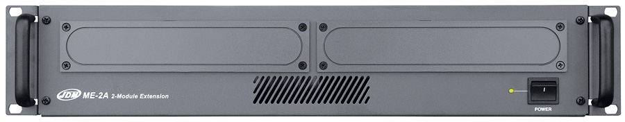 Stručný popis: sloty pro 2 moduly, oddělené i sumární symetrické výstupy, vestavěno napájení