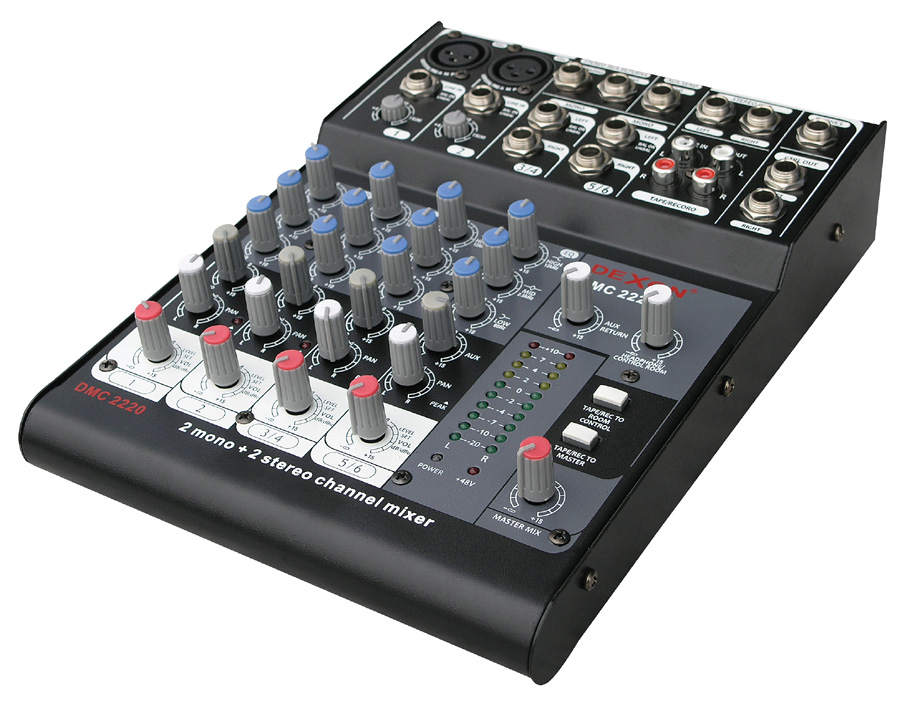 Mixážní pult DMC 2220 obsahuje 2 mono a 2 stereo vstupy. Mono vstupy jsou jak nesymetrické tak i symetrické přes konektory Jack 6,3 a XLR. Bohatá výbava, několik sběrnic, vč. odposlechové a AUX sběrnice jej řadí mezi praktické pomocníky při běžném pódiovém nebo instalačním ozvučování.